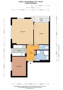 Indeling: hal/entree, gang, slaapkamer met laminaatvloer, dichte keuken rechte opstelling aan beide zijden en leuk uitzicht, separaat wandcloset, eetkamer (kan een 2e slaapkamer zijn), moderne badkamer, lichte woonkamer met laminaatvloer en leuk uitzicht op de Adriaen van ostadelaan.