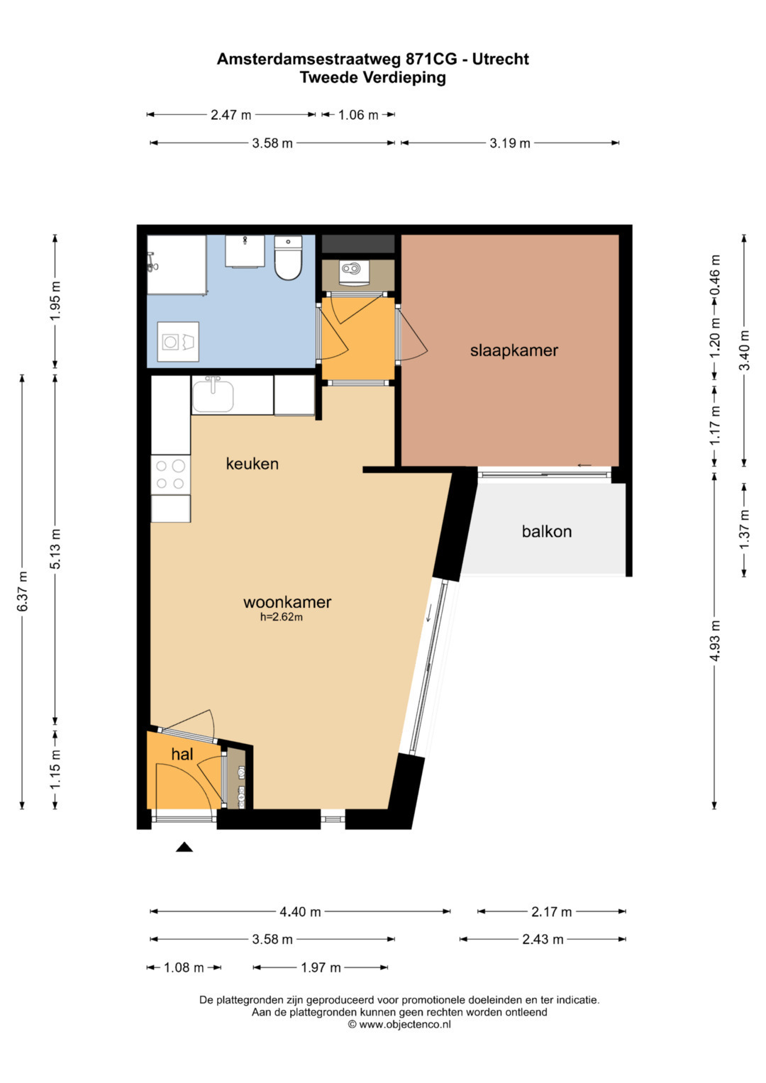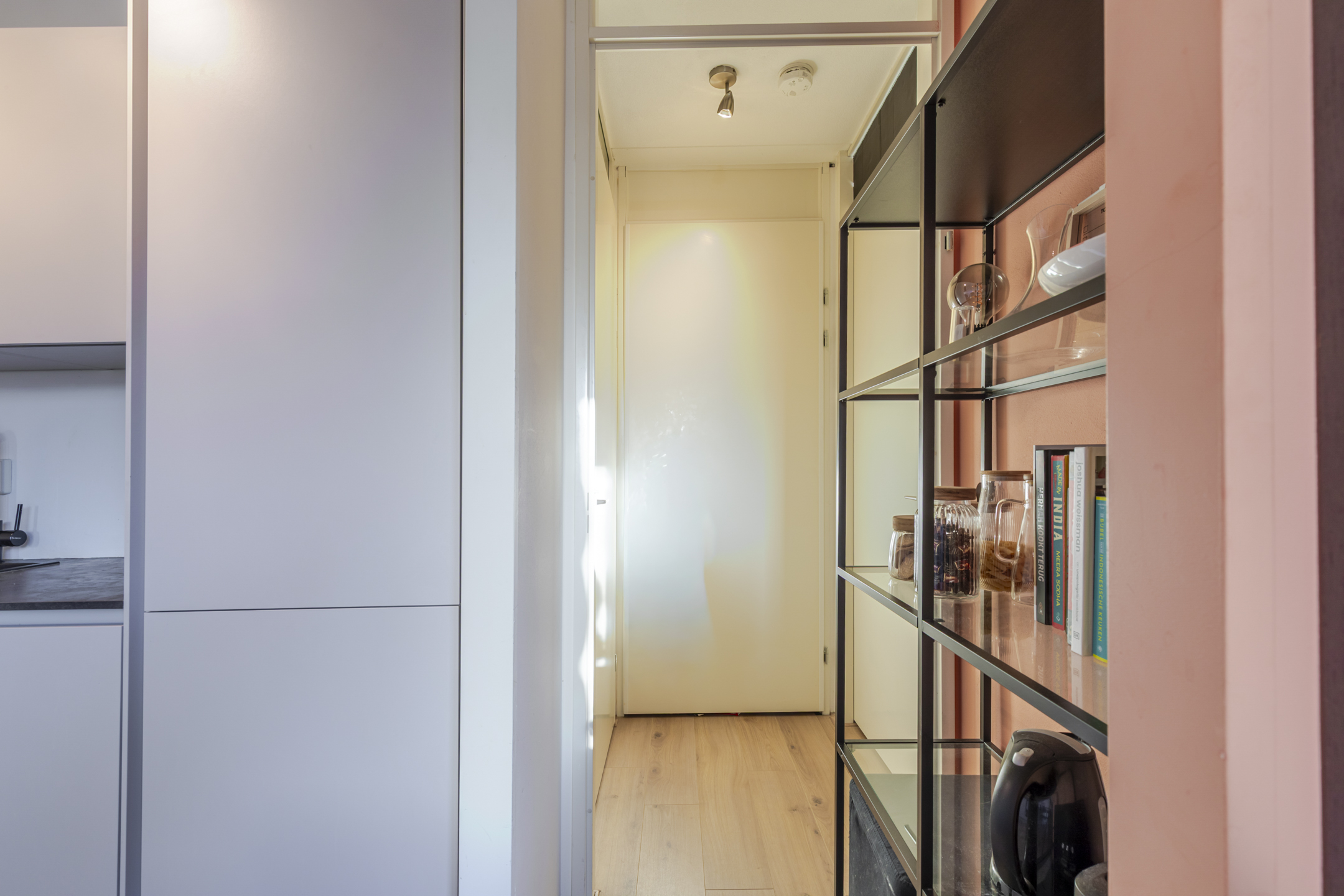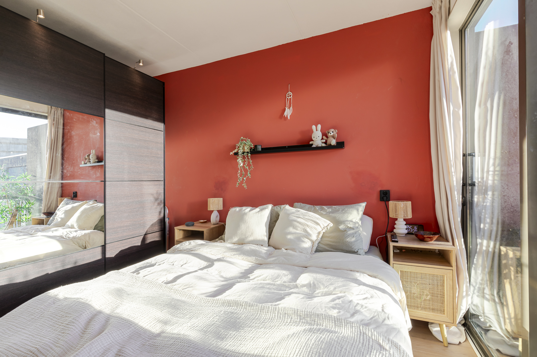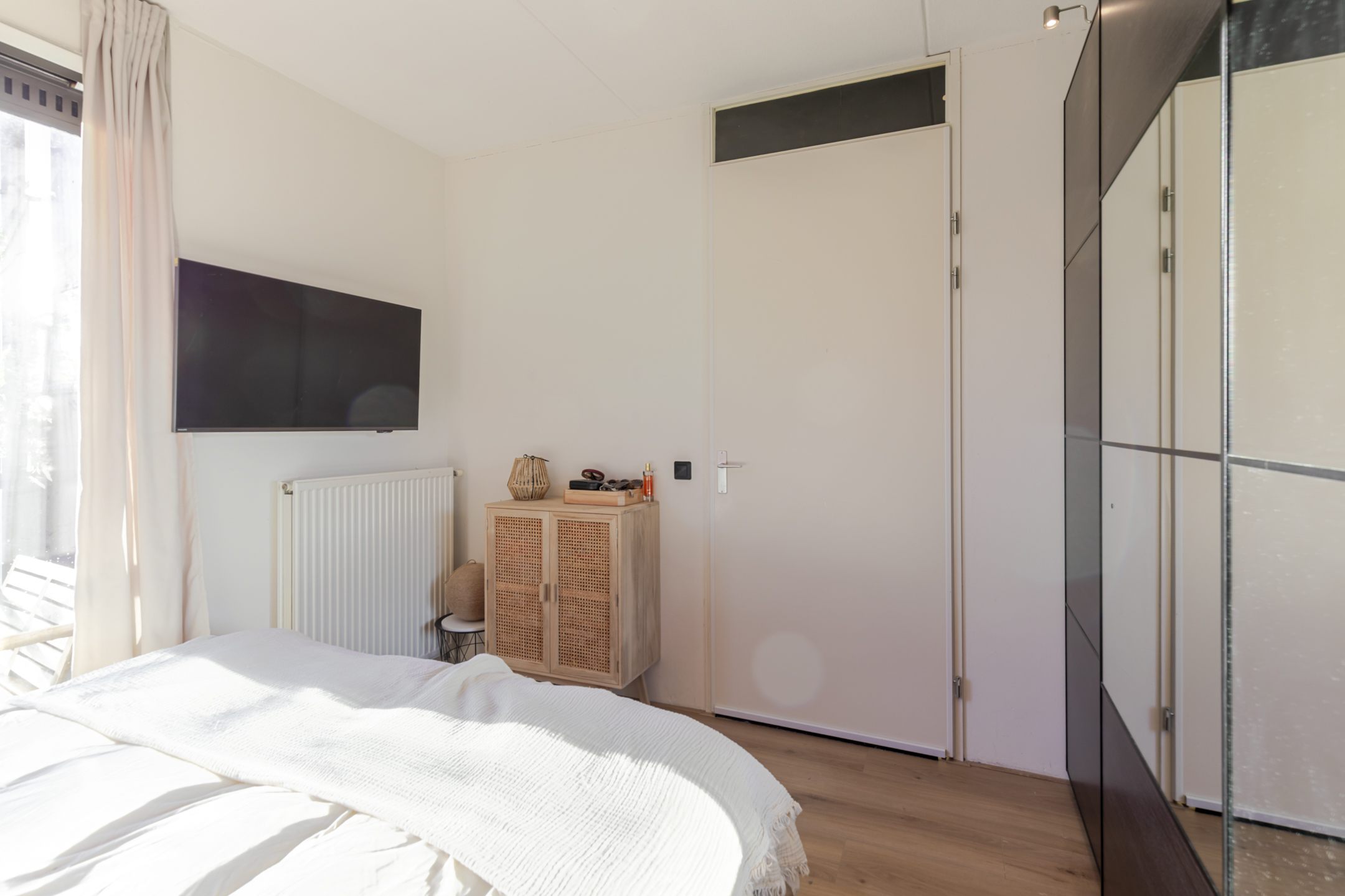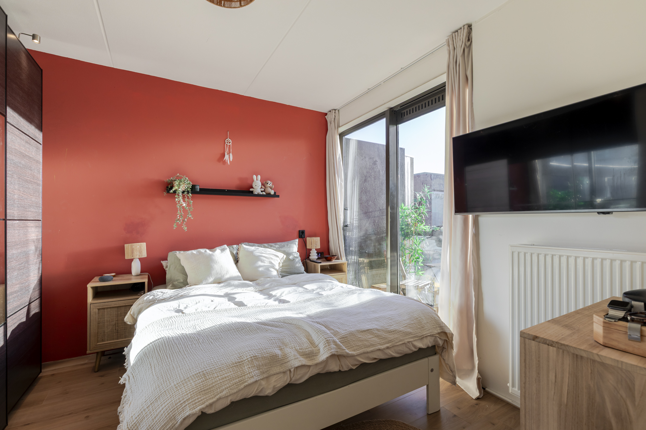 meters. Via de hal bereik je de rustige slaapkamer aan de achterzijde. Hier vind je een schuifpui naar het balkon, een fijne plek om even buiten te zitten.