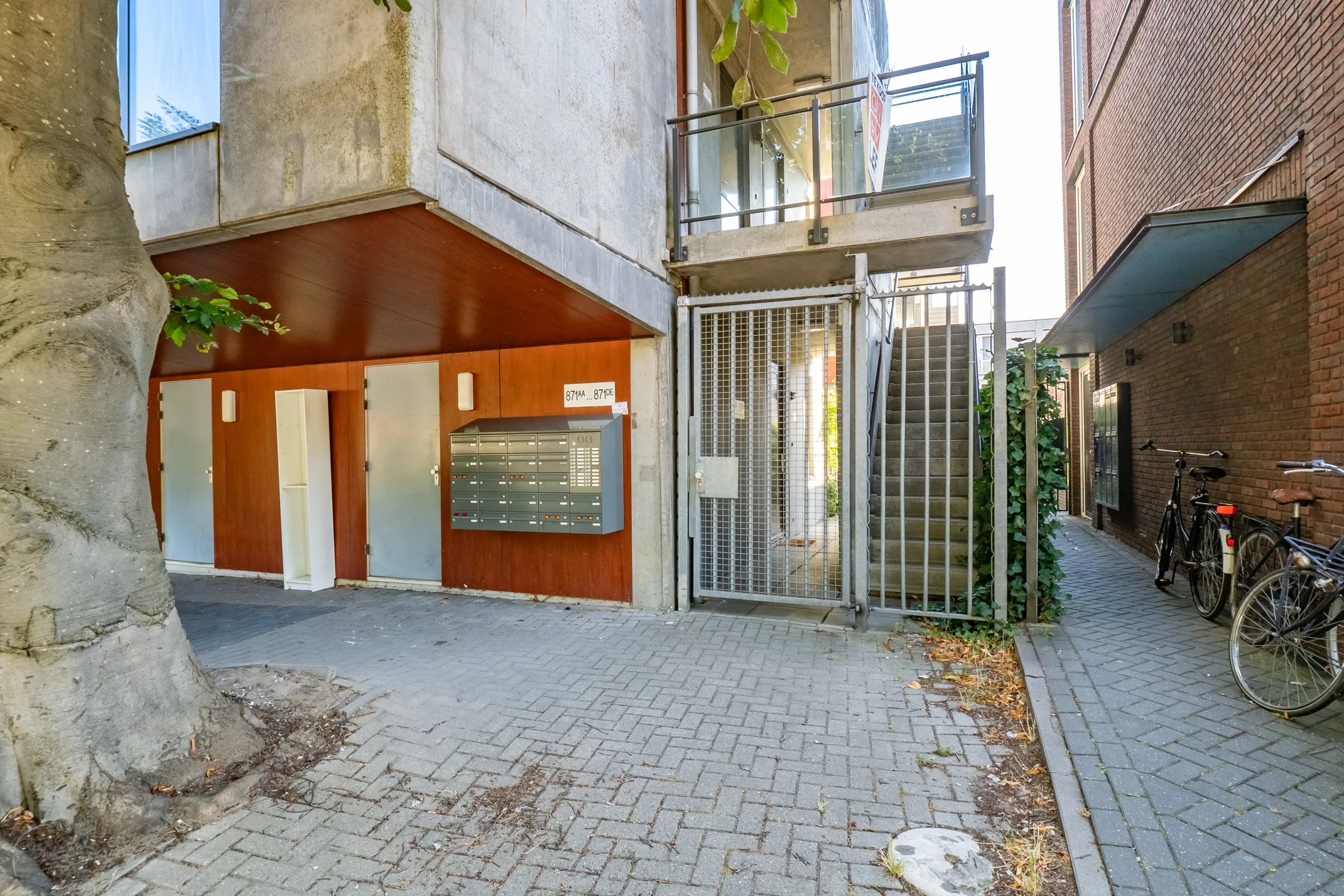 Via de afgesloten centrale entree met intercom bereik je de trapopgang en de bergingen. De privéberging op de begane grond beschikt over elektriciteit. Aan de achterzijde van het gebouw is tevens een aparte fietsenstalling aanwezig.
