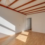 De lichte woonkamer heeft toegang tot de afgesloten achterkamer die te gebruiken is als slaapkamer of eetkamer. Ook is deze ruimte weer eenvoudig bij de woonkamer te betrekken.