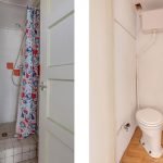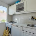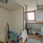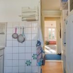 Eenvoudige keuken met toegang tot de afgesloten doucheruimte.
