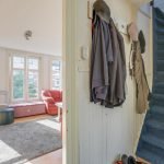 Entree, hal met toegang tot het toilet, woonkamer en keuken.