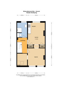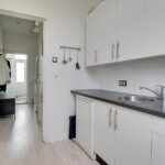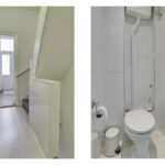 Eerste verdieping: overloop, twee riante kamers (voormalige woonkamer en suite), door middel van openslaande deuren toegang tot het dakterras, dichte keuken voorzien van apparatuur en toegang tot dakterras, separaat toilet, badkamer voorzien van wastafelmeubel en douchecabine.