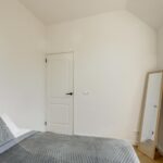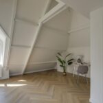 Riante open multifunctionele ruimte met werkplek en veel lichtinval door de 2 ramen aan de voorzijde en een deel vd kapconstructie in het zicht, separate wasruimte, grote slaapkamer aan de achterzijde met veel raampartijen.