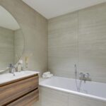 -Hoogwaardig afgewerkte badkamer voorzien van ligbad, luxe inloopdouche en wastafelmeubel