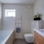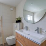 Tweede verdieping: overloop, luxe badkamer voorzien van antraciet vloertegels en lichte wandbetegeling, designradiator, douche, ruim ligbad, wastafel met meubel en spiegel met verlichting en wandcloset. De eerste slaapkamer aan de achterzijde met een ruim balkon en de tweede slaapkamer aan de voorzijde. Vanuit deze slaapkamer is de bovenste etage te bereiken.