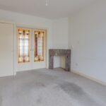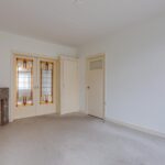 Ruime woonkamer en eetkamer gescheiden middels originele en-suitedeuren en vaste kasten aan beide kanten.