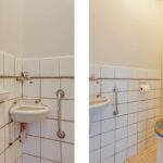Vestibule, gang met trapopgang naar de eerste verdieping, toilet met wastafeltje en trapkast.