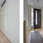 Oorspronkelijk was er een tweede deur vanuit de hal naar de woonkamer gesitueerd echter heeft de huidige bewoner besloten hier een wand te plaatsen met kapstok zodat deze ruimte volop benut kan worden. Deze wand is dusdanig geplaatst dat deze eenvoudig verwijderd kan worden waarna de deur weer teruggeplaatst kan worden.