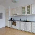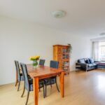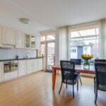 De muur tussen woonkamer en keuken is weggehaald waardoor een mooie open ruimte met open keuken is ontstaan.