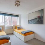 Ruime vierde slaapkamer van ca. 23 m2 (2 slaapkamers is mogelijk), een dakkapel en middels de openslaande deuren toegang tot het dakterras.