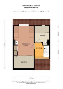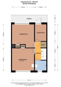 De overloop met kastruimte geeft toegang tot twee grote slaapkamers, een derde slaapkamer en een badkamer. De twee grote slaapkamers zijn elk voorzien van een vaste kast.