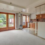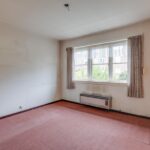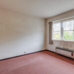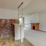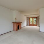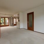 Vanuit de hal bereik je de lichte en zonnige woonkamer, voorzien van een schouw, groot raam aan de voorzijde en openslaande deuren aan de achterzijde.