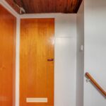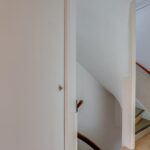 De originele houten buitendeur met origineel glas en boven raampje geven de entree die leuke authentieke sfeer. De hal geeft toegang tot het toilet met fontein en een grote verdiepte trapkast.