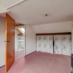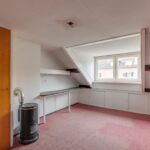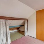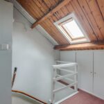Rechtdoor bevindt zich een verrassend grote zolderkamer met dakkapel en een vaste kast.